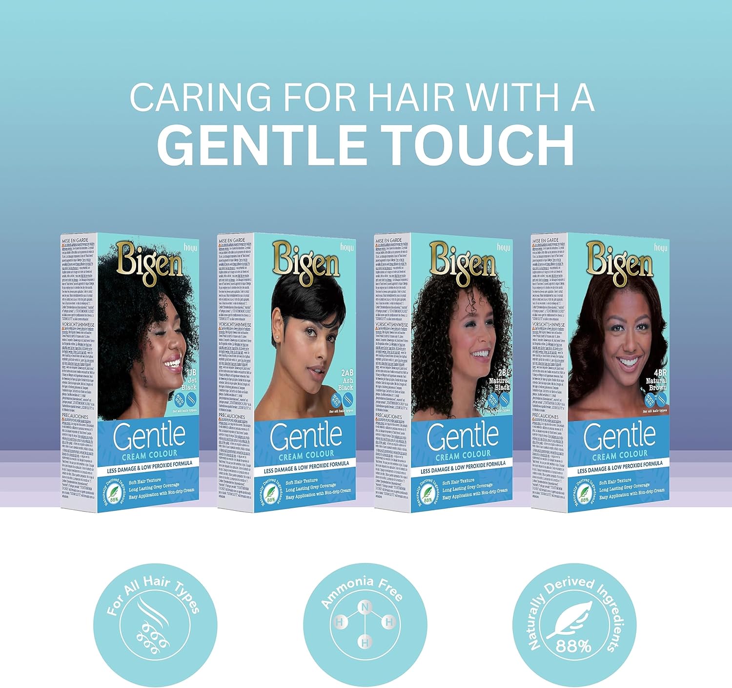 Our Gentle Cream offers an easy application with non-drip cream and ammonia free. Its 88% natural ingredients formula help in giving the hair a soft texture and comes in 4 colours to choose from.